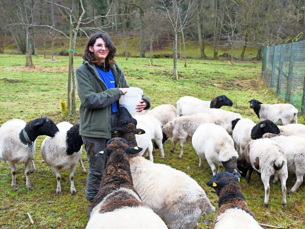 Die 19-jährige Französin Julia Schallenkammer absolviert ein Freiwilliges Ökologisches Jahr im Itzbachtal in Siersburg. Unser Foto zeigt sie beider Fütterung der Schafe. Foto: Oliver Morguet